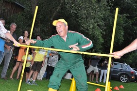 Da sich bei Willi in den letzten Wochen/Monaten sowieso viel um's Laufen gedreht hat, musste er auch vor Ort einen kleinen Hindernisparcours bewältigen. Selbstverständlich wurden ihm dazu verschiedene Laufoutfits zur Verfügung gestellt, die Ausrüstung war somit erstklassig. Zwischen den einzelnen Durchgängen gab es ein paar Fragen zu beantworten bzw. ein paar Verkaufsschlager der Firma "Würth" (oder so...) an den Mann (Klaus) zu bringen. Der Abend fand - aufgrund eines heftigen Gewitters - einen feucht-fröhlichen Ausklang.