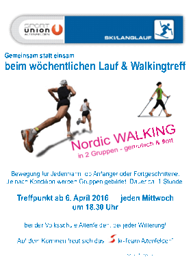 Neu dabei sind dieses Jahr zwei Nordic Walking Gruppen: eine in der etwas flotter gegangen wird und eine "gemütlichere" Gruppe. Weitere Infos - siehe Ausschreibung!